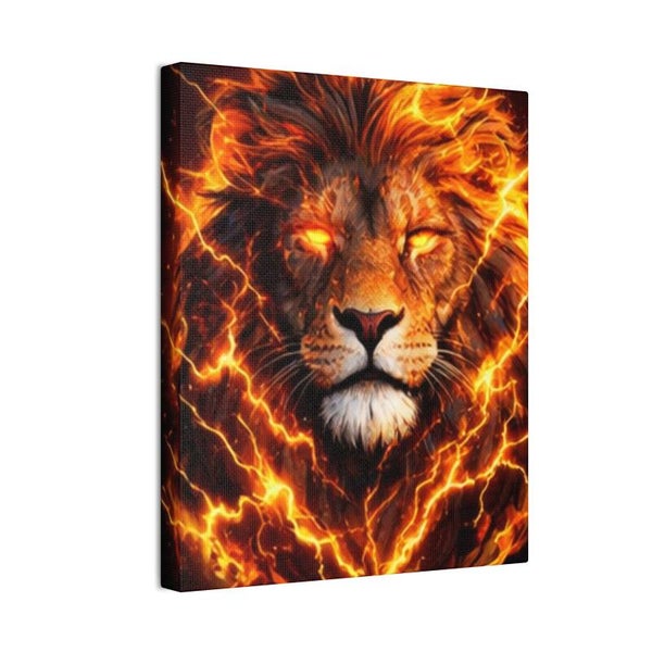 Inferno King Bold Lion Wall Art Canvas Stretched 0.75" | Power Strength Majesty