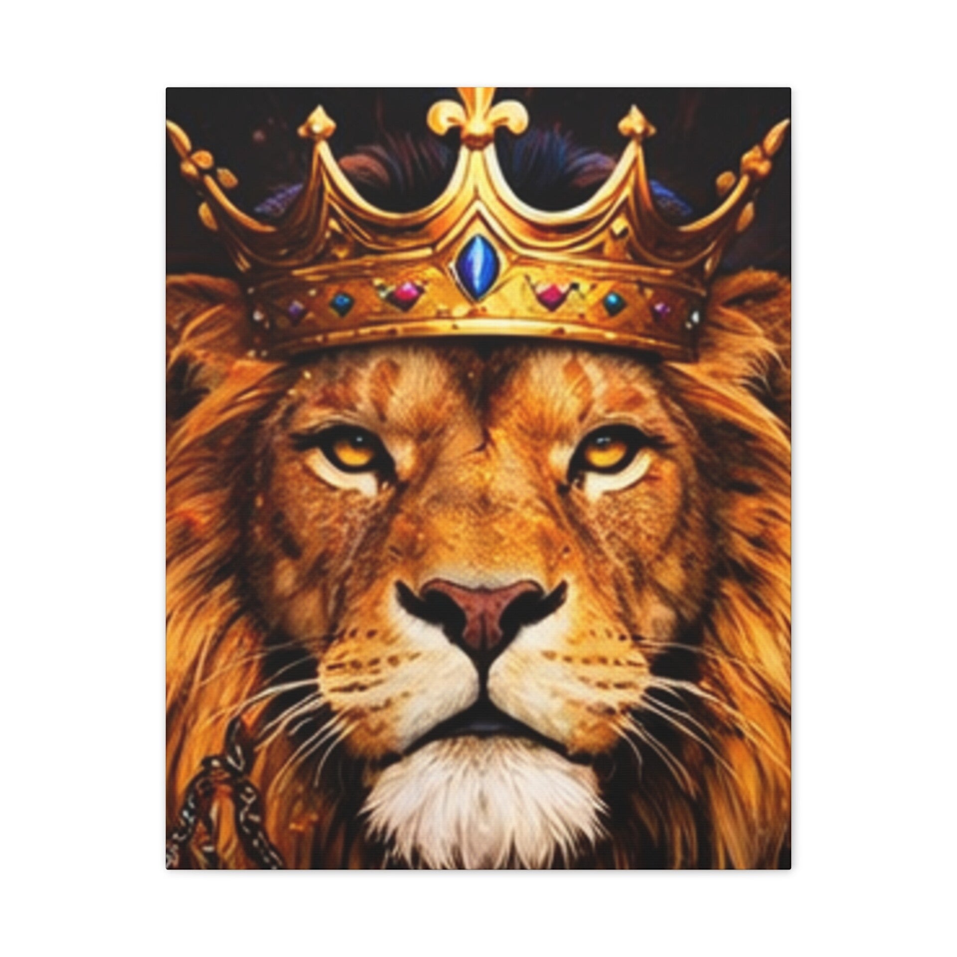 A bold canvas wall art piece designed to bring regal presence and commanding energy to any room. The Crowned by Destiny design features a majestic lion wearing an ornate crown, rendered in vivid, high-definition color on a heavy-weight polyester canvas.