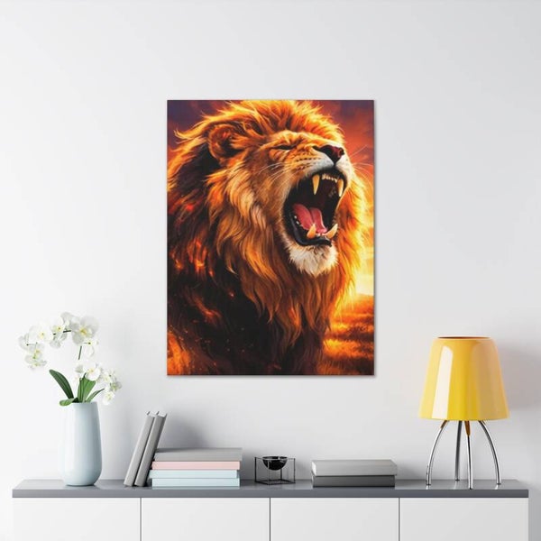 Roaring Sunset Lion Canvas Stretched 0.75" | Wall Art, Safari Decor